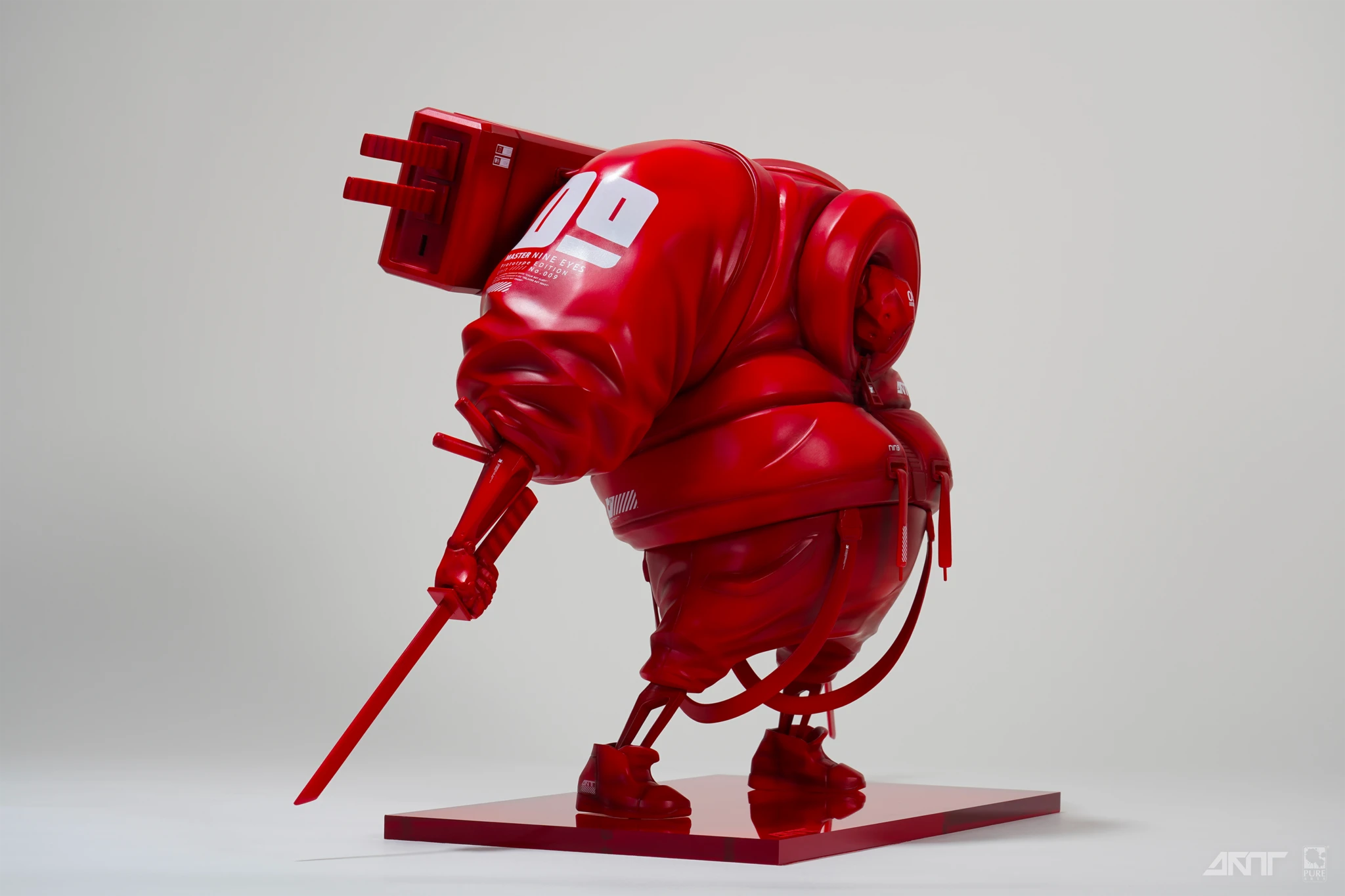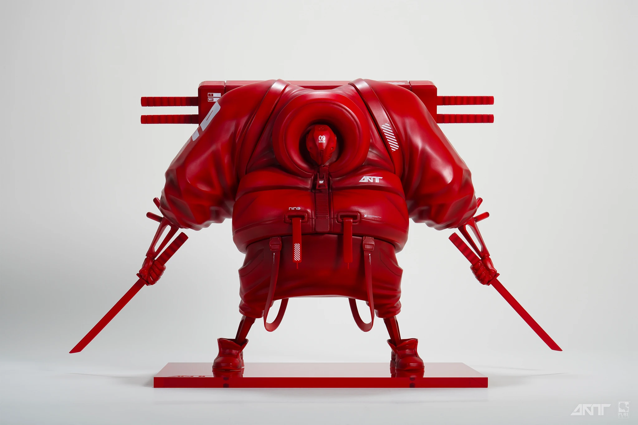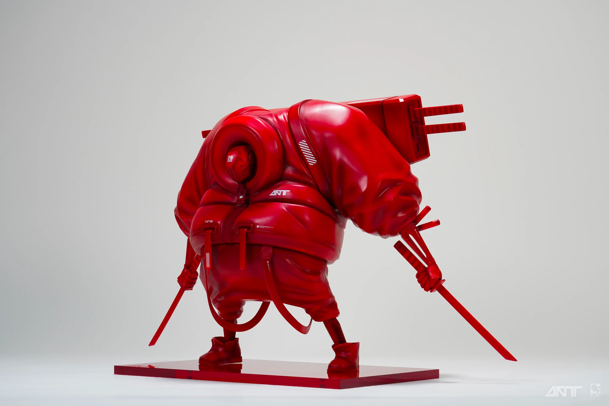 This original character design of a futuristic, chunky samurai is the perfect blend of both a badass character with perfectly designed shapes. His overall look is completed by his puffed jacket and stylish katana backpack.
