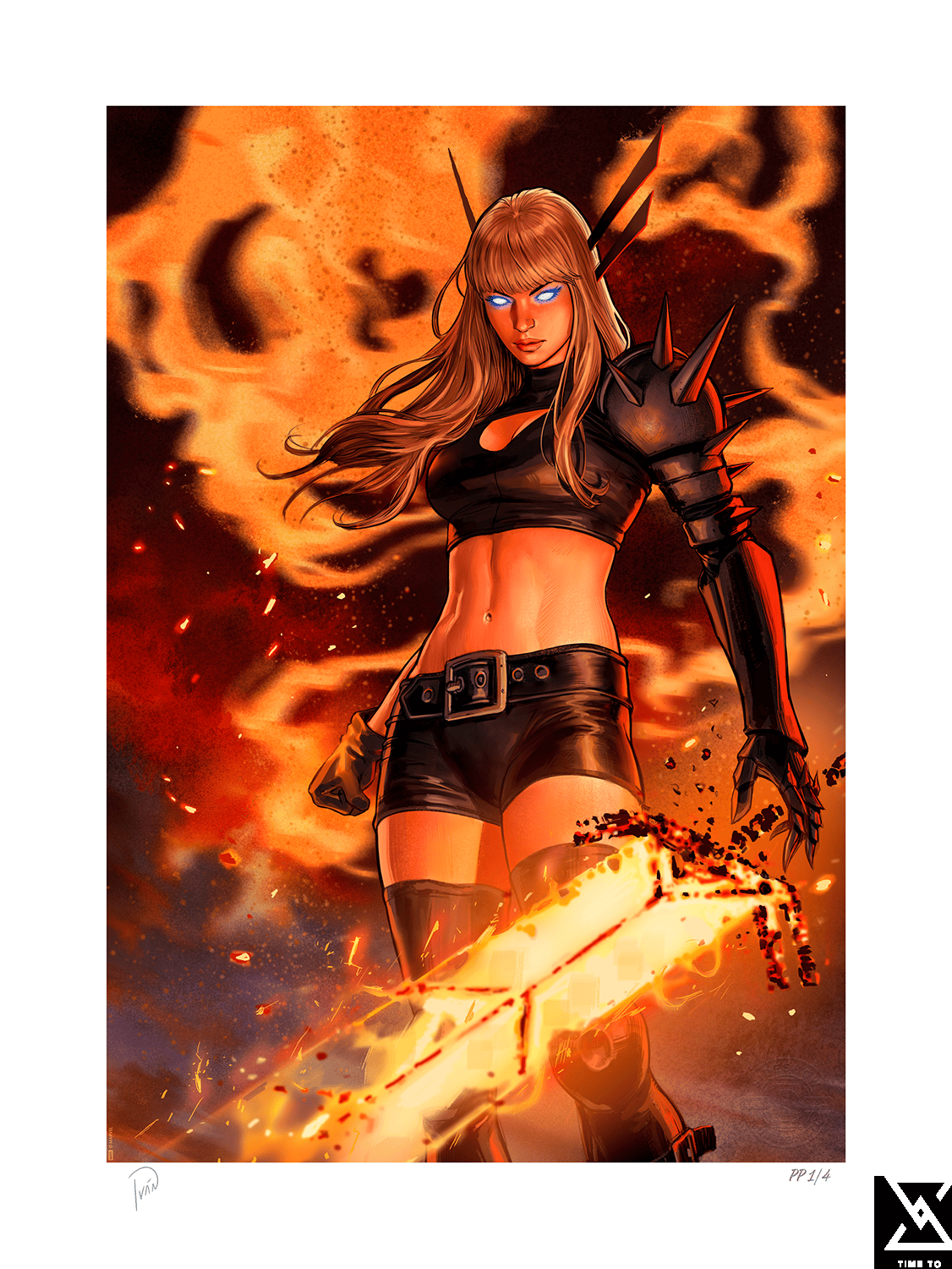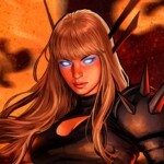 Fire and fury reign as the Queen of Limbo razes this world to the ground. After destroying everything in her wake, Illyana Rasputin dispels her weapon in a display of pure power. In this sorcerer’s capable hand, the Soulsword dissipates into ash and brimstone, flames licking the blade. There is no rest for the wicked — but Magik can always take a moment to revel in a well-earned victory.