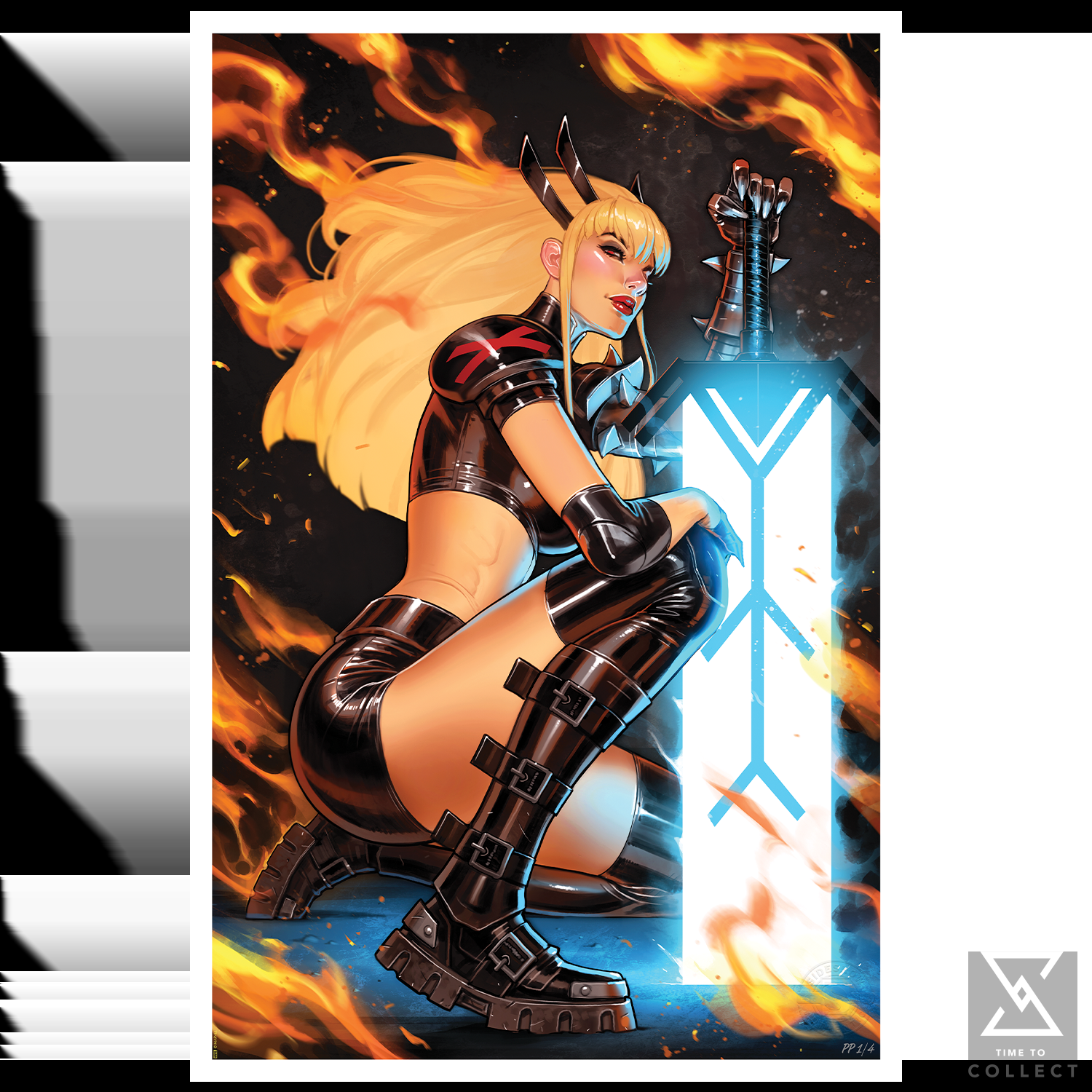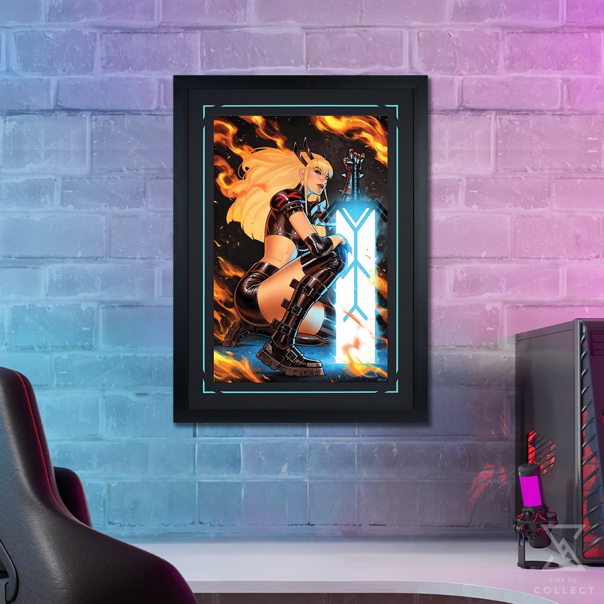 Originally created as a variant cover for Magik #1 (2024), written by Ashley Allen for Marvel Comics, this X-Men art is now available as an unframed giclée print or in a custom framed presentation. Each Magik Fine Art Print features an embossed Sideshow Seal of Authenticity as part of the limited edition of 200 pieces.