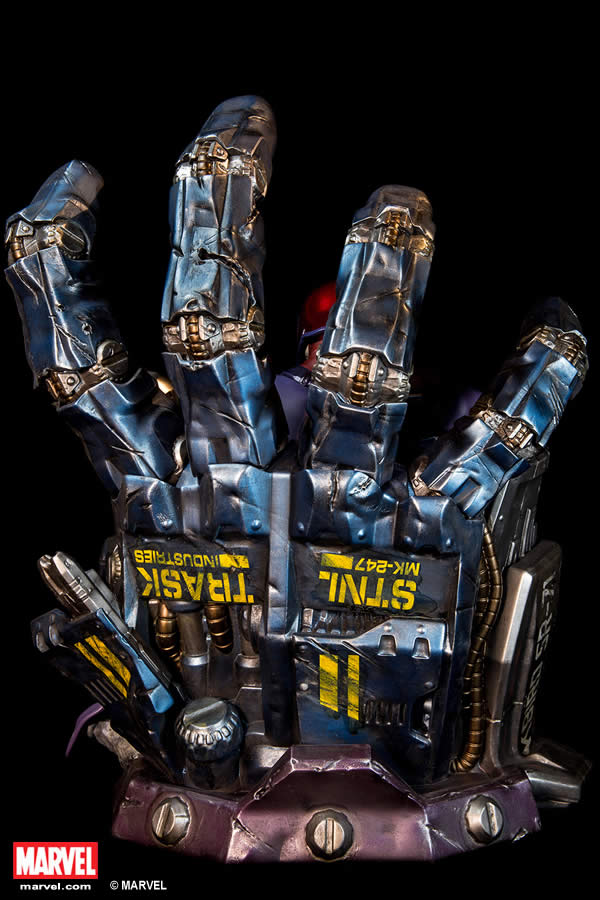 · Two (2) interchangeable left arms (one arm with open palm and a ‘hovering’ Cerebro helmet, one arm with hand resting on Magneto’s helmet) for alternate display