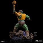On a battlefield on the distant planet Eternia, an expert, and valiant warrior rush forward to defend his kingdom. Wearing orange armor over a green mesh, he raises his club ready to attack and overcome his enemies. An experienced veteran fighter, he uses his wisdom to create high-technology artifacts to enhance his and his allies’ skills against evil forces. Iron Studios bring the statue “Man-At-Arms BDS – Masters of the Universe – Art Scale 1/10”, presenting the heroic man-at-arms of Eternia’s royal guard and one of the main allies of He-Man and the Masters of the Universe.