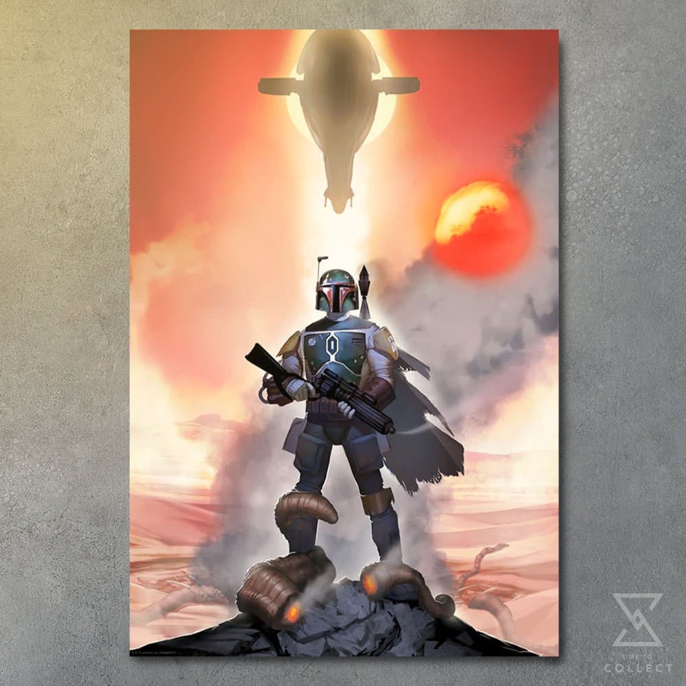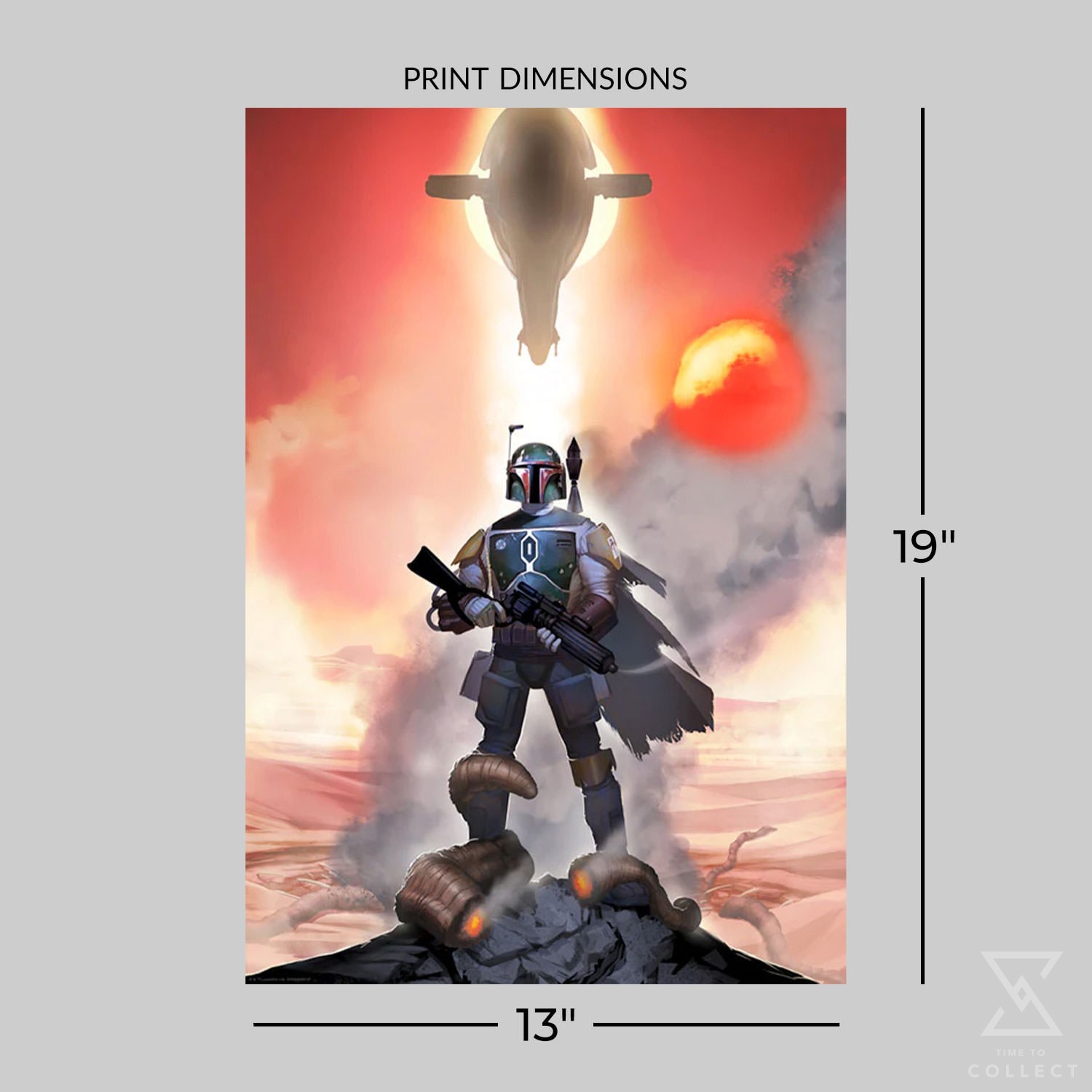 This Star Wars: Return of the Jedi-inspired print featuring the one and only Boba Fett is sure to make the perfect addition to any Star Wars collection and sci-fi art gallery! Each print is hand-numbered out of 150 pieces and comes with a Certificate of Authenticity.
