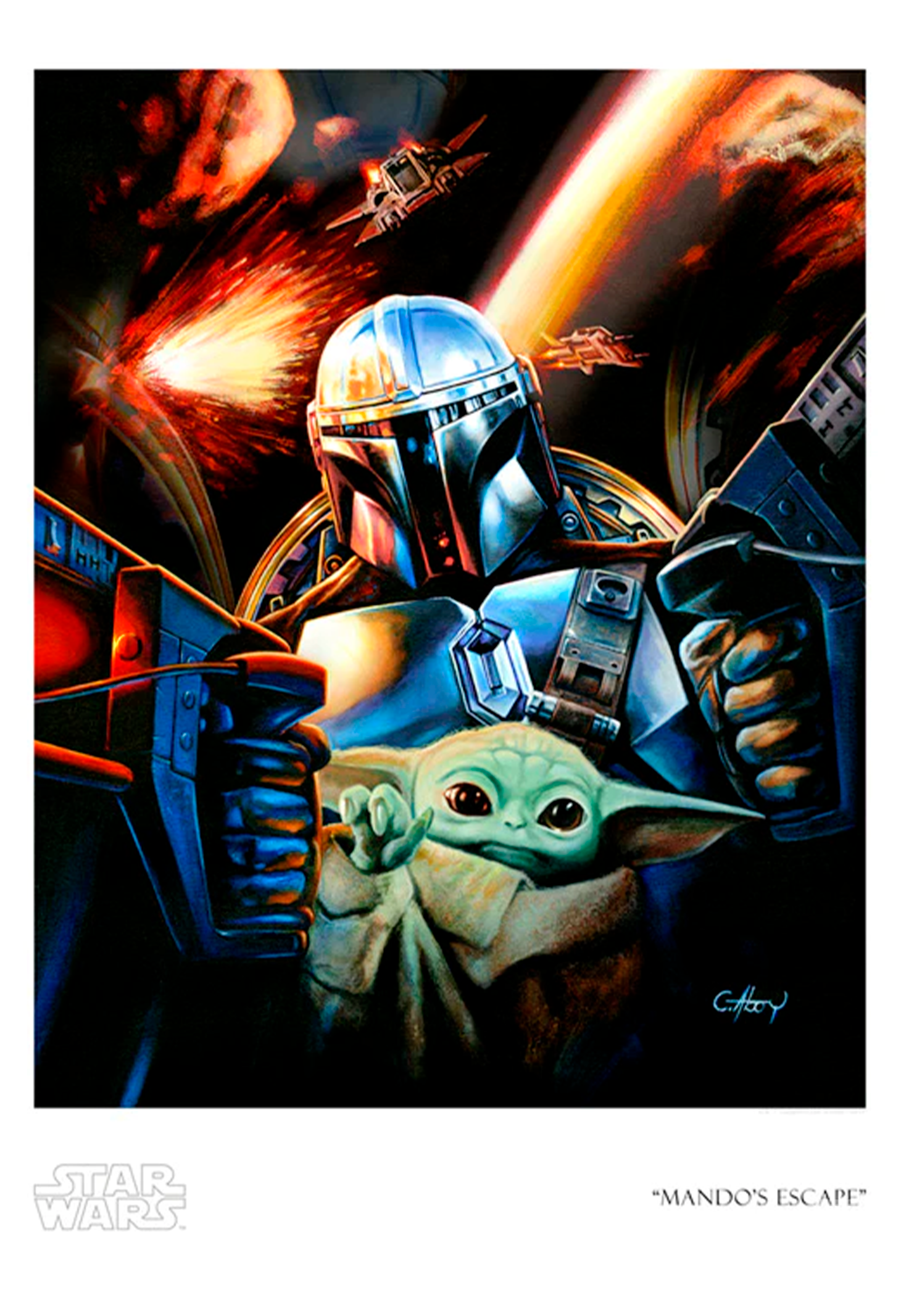Sideshow and ACME Archives are proud to present the Mando’s Escape Art Print by Claudio Aboy!