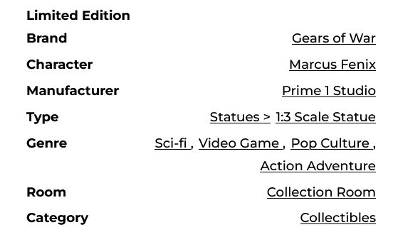 A legendary Gear, built in 1:3 scale with uncompromising realism—this is the powerful reinforcement that will rank up your Gears of War collection and video game collectible display.
