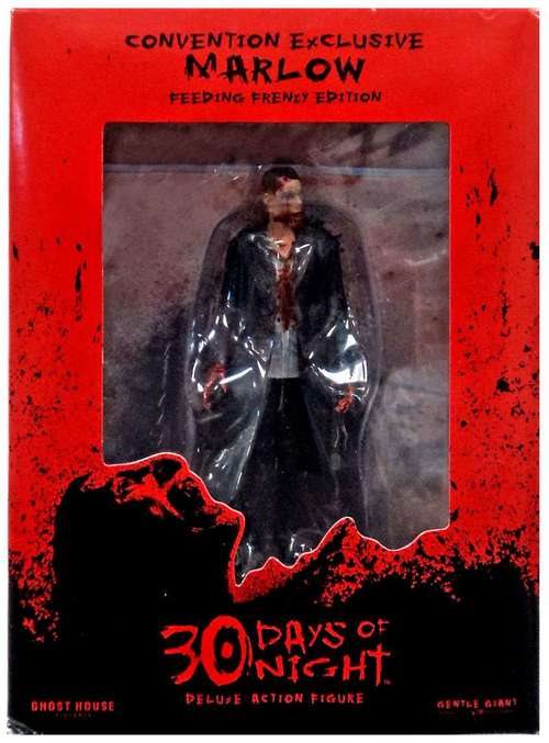 Action figure with base, liquid filled (bloody) mouse pad and Bonus comic book. Randomly selected packages may include an authentic movie prop patch (Barrow Sheriff Department or Alaska Fire Marshall.)