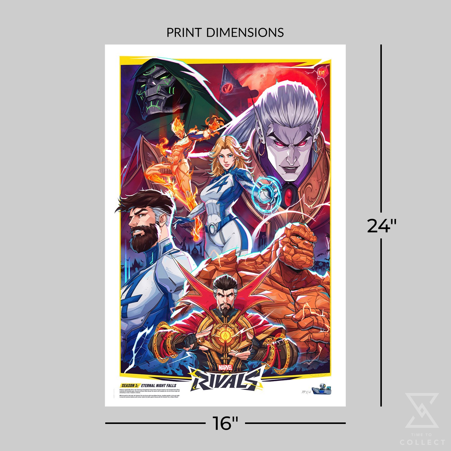 Vanguards, strategists, and duelists — now’s your time to join the battle! Bring home the Marvel Rivals: Eternal Night Falls Fine Art Print by Jhony Caballero today.
