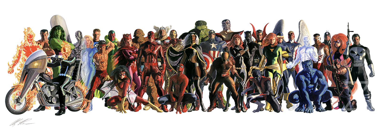 Created as a companion piece to Alex Ross’ masterful mural of Marvel heroes in the Marvel Studios’ corporate offices, this detailed lineup features over 30 iconic villains who have stood against the likes of the Avengers, the X-Men, Spider-Man, and more. Marvel fans of all ages can spot the baddies they love to hate here, including notables like Loki, Thanos, Magneto, Doctor Doom, and Venom. From the expansive green wings of Vulture and Annihilus to the towering faces of M.O.D.O.K. and Galactus, evildoers of every shape, size, and sinister history can be seen in the assembly, each rendered in Ross’ signature photorealistic style.