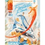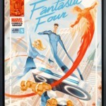 Combining both vintage wonder and modern innovation, this timeless illustration showcases an extraordinary quartet in their element. Mr. Fantastic, Invisible Woman, Human Torch, and The Thing demonstrate their out-of-this-world abilities on a sunny day … which of course matches their cheerful dispositions! Together, the Fantastic Four breaks through the confines of a stylized comic cover just as they pushed their potential in the cosmos as astronauts. Galactus and his herald, the Silver Surfer, foretell an epic confrontation from the corner box. What do you say, adventurers — will you add this issue to your pull list?