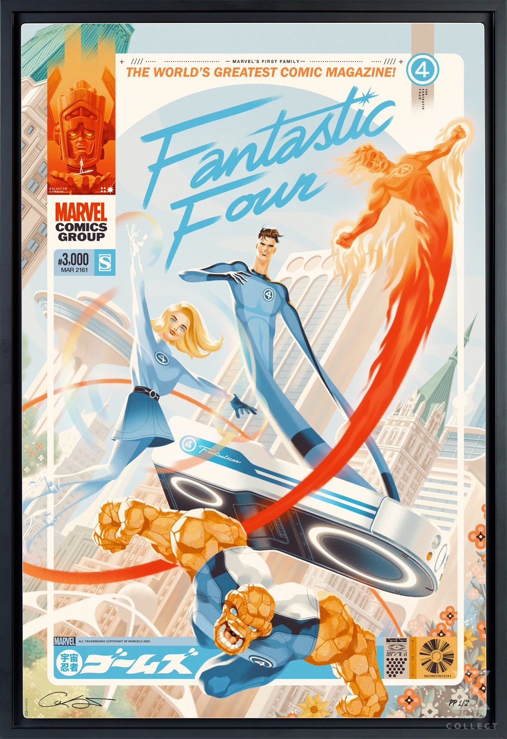 Inspired by decades of Fantastic Four comics, this original super hero art is available to fans as an unframed giclée print or in a custom framed presentation. Each Marvel’s First Family: The Fantastic Four! Fine Art Print features an authorized, automated artist signature and an embossed Sideshow Seal of Authenticity as part of the limited edition of 200 pieces.