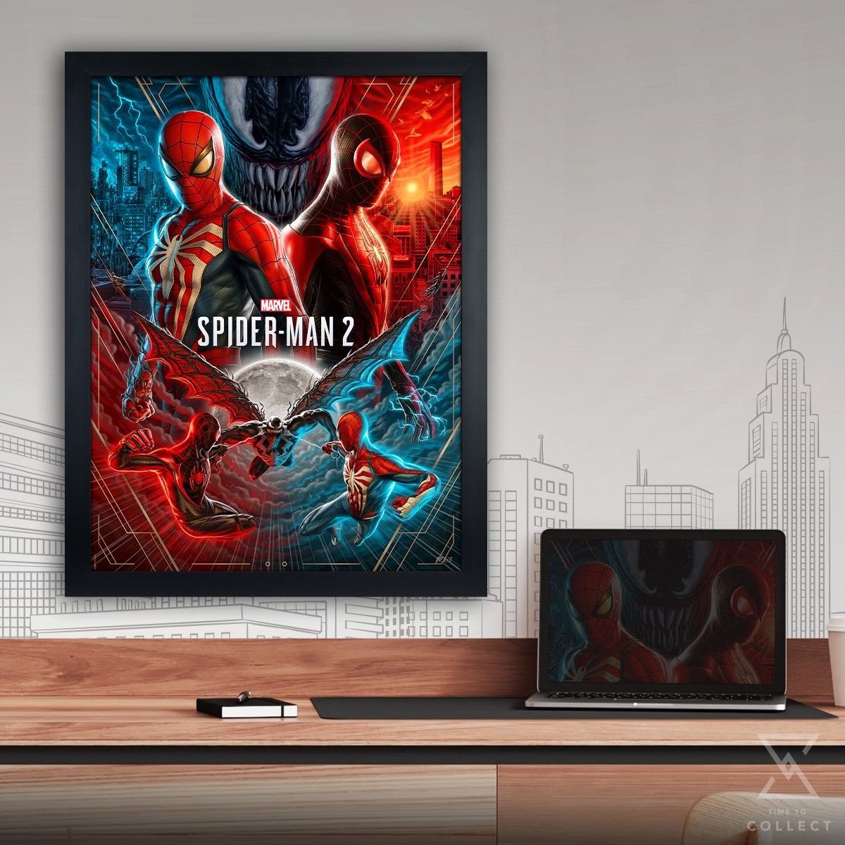 Decorate your wall Spidey style with the Marvel’s Spider-Man 2: Greater Together Fine Art Print by Sam Green.