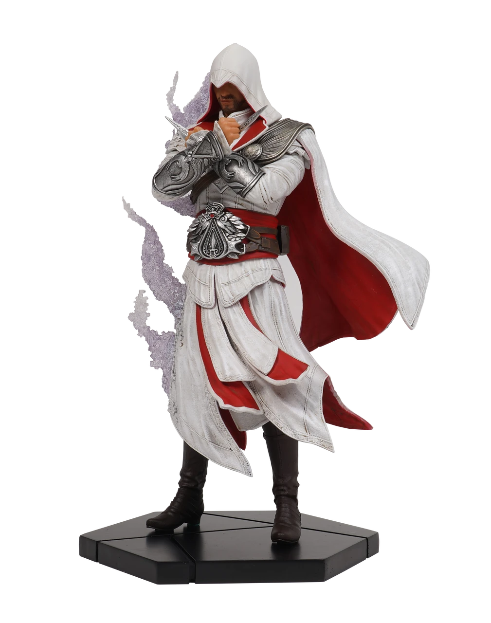 Discover the new Master Assassin Ezio 1/8 Scale PVC Statue inspired from Assassin’s Creed® Brotherhood. The beautiful Animus effect pays tribute to the present/past duality central to the game. Master Assassin Ezio is depicted in an iconic pose with his dual hidden blade.