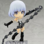 A Kotobukiya Japanese import! Kotobukiya has created the ultimate mash up by combining our Frame Arms Girl series and the Cu-Poche Action Figures line, and coming next are not one but two different color versions of a classic character starting with Material Black! Poseable and fun, each 4 ½ inch Cu-Poche figure features multiple points of articulation and magnets in her feet for extra stability on the included base or other metal surface. While Materia may look like a regular girl she is in fact an advanced robot, a highly-customizable combat machine. Her adorable Cu-Poche form replicates her appearance as a young lady wearing a black and silver external armored Frame on her limbs, torso, and head. Material Black’s blue hair and eye colors have been changed along with the costume, and all parts are interchangeable with the white costume version (sold separately). Even better, you have tons of fun posing and display options thanks to 14 points of articulation and additional parts including three different facial expressions, two types of hands, and even a small bag for storing the extra parts! Sculpted by Yoshihiro Saimaru, Materia Black stands 4 ½ inches tall. Display this dark version with other Frame Arms Girl Cu-Poche figures and plastic model kits, and mix and match parts with the white version!