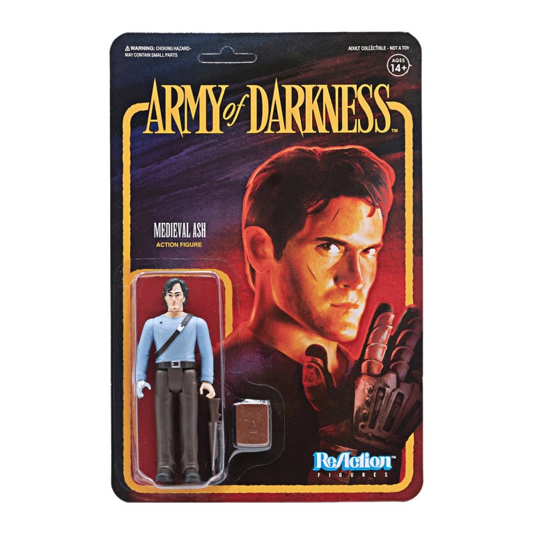 From Detroit to ancient England, Ash is just the hero we need! This Army of Darkness Medieval Ash 3 3/4-Inch ReAction Figure comes on a retro style 6×9-inch cardback.