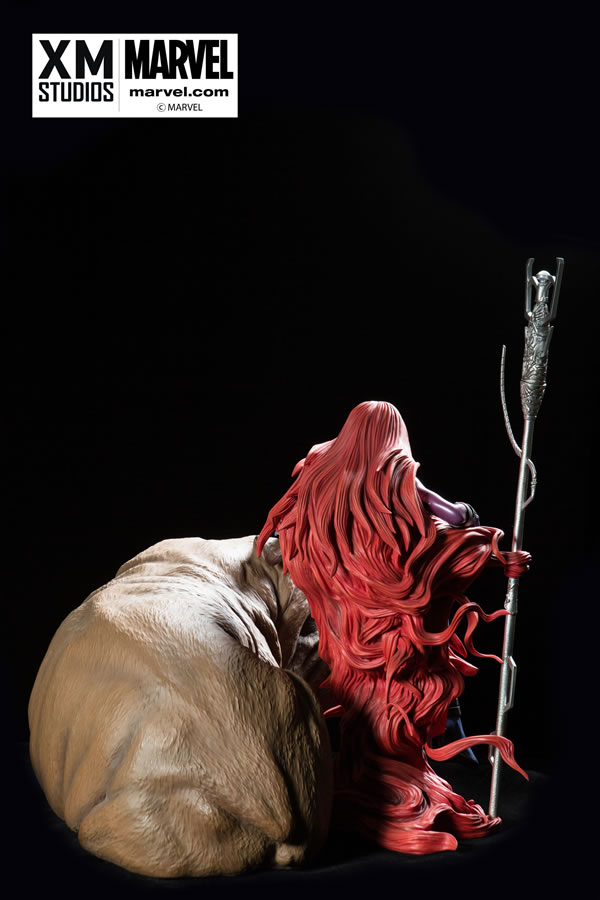XM Studios is excited to present our next Marvel Premium Collectibles series statue, Medusa! The Queen of the Inhumans is immortalized in amazingly detailed 1:4 scale cold-cast porcelain. Each painstakingly handcrafted statue stands at approximately 43 cm tall and every piece individually hand-painted with the highest possible quality finish. Her royal highness has possibly at this point in time, the biggest base, or rather companion piece in the form of Lockjaw, the loyal escort to the Royal Family of the Inhumans. Medusa is designed to display well together with her King, Black Bolt!
