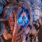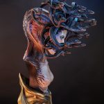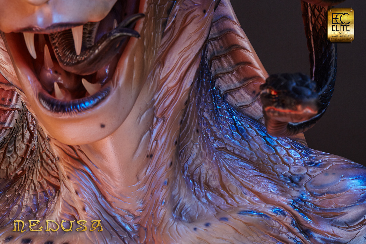 From a fascination with the natural world, the intricacies of geometric design, heroic tales of gods and monsters, to a passion for the human form and the Classical Style, the Medusa bust is one of the most carefully and subtly conceived sculptures ECC has created to date. She is more than just a straightforward illusion of flesh and blood. She is also an essay in order and proportion, a meticulously composed scheme for how a mythological creature should be. Each venomous snake on her head has intelligence, and is individually looking for their prey.