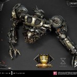 The talented artists at Prime 1 Studio have spent many hours of precision sculpting and exacting paintwork to bring you the first “live-action” film Megatron ever brought to the silver screen. “Screen accurate” does not even begin to describe the elegant beauty of this statue. All the complex curves, intricate details, and innumerable parts have been reproduced for your enjoyment. This Ultimate Bonus Version comes with a raised Left Arm, a lowered Right arm, a Right Gun Arm, a Right Battle Mace Arm, and an intense Megatron face with red, seething eyes powered by LED Illumination! The Hoover Dam-themed Base calls back to the climactic battle set in that environment, featuring an impeccably sculpted Sideswipe as a hapless victim to Megatron’s rage, just as the iconic Decepticons logo is emblazoned front-and-center! And when you pre-order this Ultimate Bonus Version from our official online store or any authorized distributor, you will receive a cool, extra Bonus Part: an additional Megatron Head, also with LED-Illuminated Eyes!