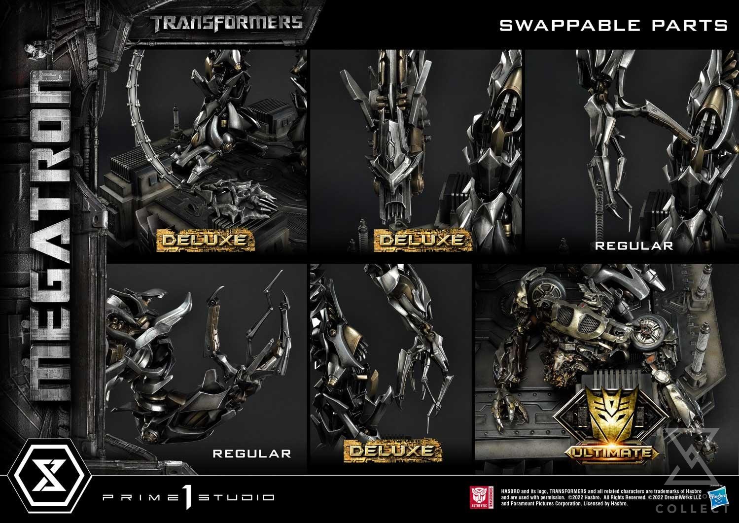 Prime 1 Studio is, finally, extremely proud to present the Megatron that started it all: MMTFM-34UTS Megatron Ultimate Bonus Version from Michael Bay’s 2007 TRANSFORMERS! Thousands of years ago, the Transformer planet – Cybertron – was consumed by a bitter civil war between the Autobots, led by Optimus Prime, and the Decepticons, led by Megatron! Both sides were in search for the All Spark – the source of all Cybertronian life. But while Optimus needed it to rebuild Cybertron, Megatron needed it to destroy the Autobots and rule the Universe! Now, their unending battle brings the clashing warriors to Earth, where the All Spark has been hidden and where the winner of this conflict will determine the future of their race! Prime 1 Studio portrays the exalted leader of the Decepticons in all of his 31-inch-tall glory! Standing on a Hoover Dam themed base, Megatron taunts his enemies in his full majesty!