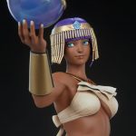 From the desert sands to Kanzuki Beach, Menat keeps it cool in her summertime swimsuit costume. The Menat: Season Pass Statue measures 18” tall and 12.5” wide as the fortune-telling fighter takes a break from looking at the future to focus on the playful present. Menat has traded her signature crystal ball for a beach ball, leaping off a pyramid-themed base to serve up a round of seaside fun.
