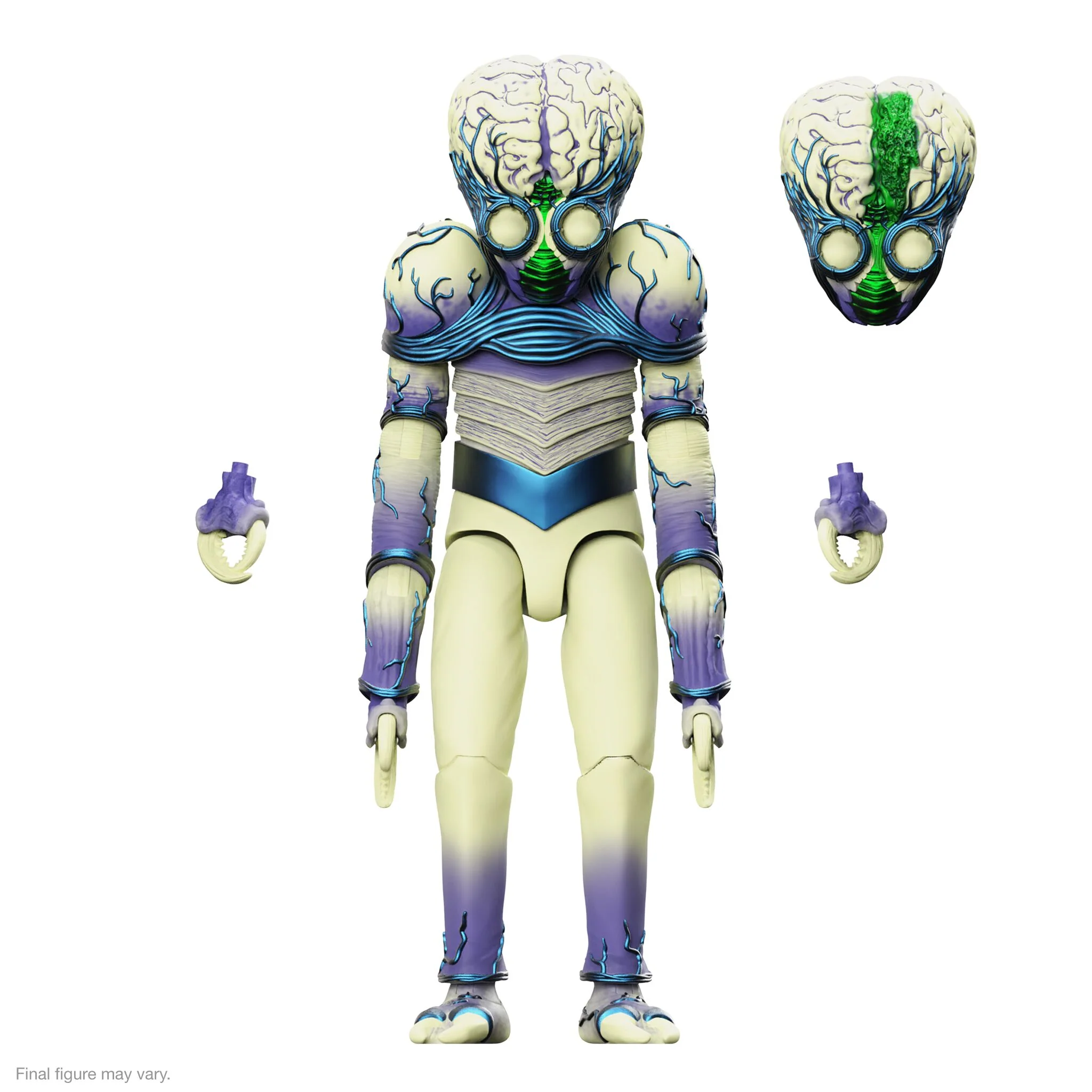 It looks like the failing ionization layer of its home planet has imbued this Metaluna Mutant with an otherworldly glow! This highly articulated, 7” scale Metaluna Mutant ULTIMATES! Figure is constructed of a glow-in-the-dark material, features intricate sculpting and premium paint detail, and comes with an interchangeable head and extra pair of hands! The new glow-in-the-dark Metaluna Mutant ULTIMATES!, in all its veiny glory, can now haunt your collection day or night!