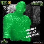 Mezco’s Monsters: The Frankenstein Monster is our own rendition of the iconic creature, which features a removable parietal bone that exposes his brain. This limited edition, translucent green variant glows in the dark and is sure to illuminate your collection of classic monsters.