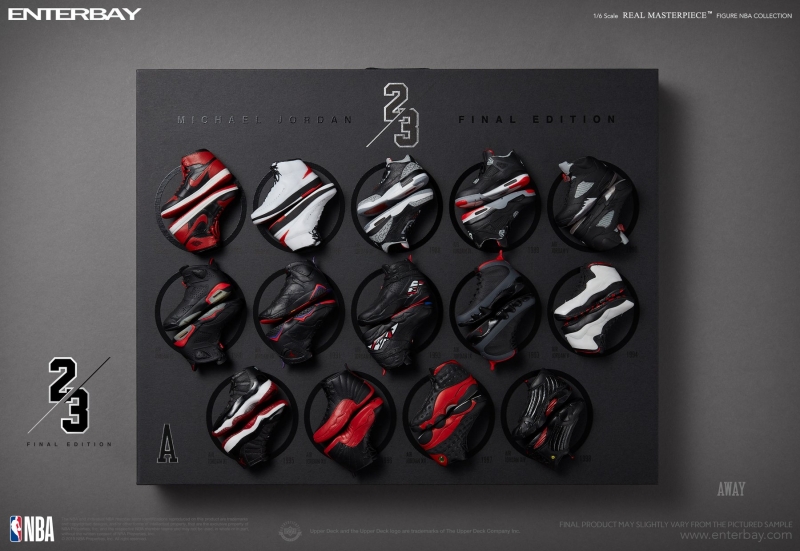 – For the first time, also the last, a Complete 1:6 Scale Air Jordan 1-14 in Away colorway, comes with the special designed Display Base for ultimate collection