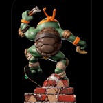 In New York City, four young brothers secretly fight against evil, facing bandits and even alien invaders. Created in the comics by Kevin Eastman and Peter Laird, Teenage Mutant Ninja Turtles, or TMNT as they’re known, became a great success in the late 1980s, expanded to many media, and is revered until today by fans all over the globe, and now gains its first line of statues by Iron Studios. The heroes’ group is made of four mutant turtles that, thanks to a viscous substance called Mutagen or Ooze, acquired human-like characteristics and were baptized by their sensei with the name of Italian Renaissance artists. Trained in the ninjutsu martial arts by their master, a rat called Splinter, they use a sewer network as their home and headquarters. Their greatest arch-enemy is the evil Shredder, leader of the criminal ninja group Foot Clan.