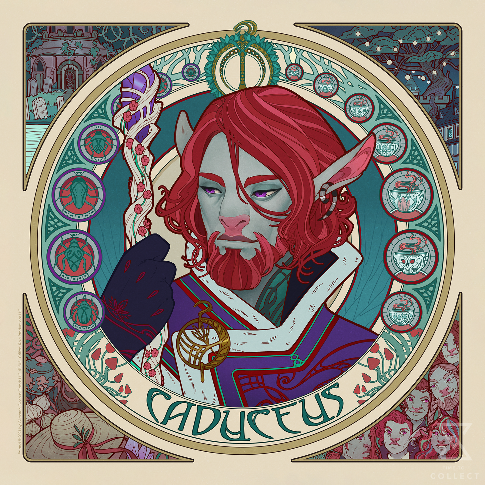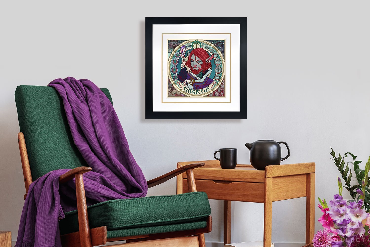 Looking for a new addition to your gallery? Aren’t we all? Let your collection bloom and bring home the Mighty Nein Portrait Series: Caduceus Fine Art Print by Sam Hogg today.