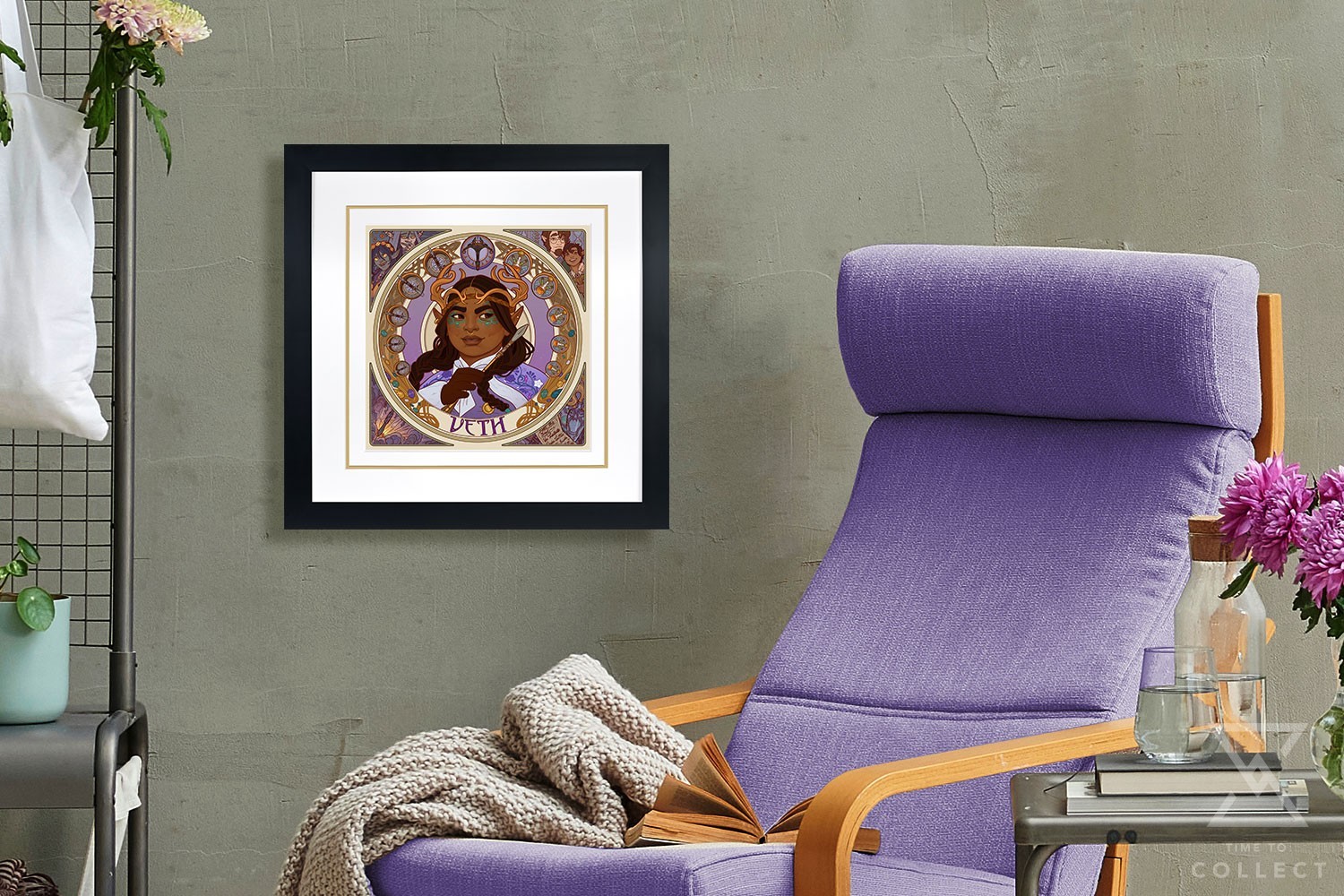 Each Mighty Nein Portrait Series: Veth Fine Art Print features an embossed Seal of Authenticity as a part of the official Critical Role collection offered by Sideshow. Available both unframed and in a custom framed format, this ornamental Critical Role collectible makes a mighty addition to any Critter’s collection. Pair Veth with her other teammates in the Mighty Nein Portrait Series like Caleb, Caduceus, Jester, Fjord, and Beau to assemble the greatest adventuring team this side of Exandria in your home.