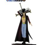 Dracule “Hawk Eyes” Mihawk is a world-famous pirate who holds the title of “Strongest Swordsman in the World”. He was one of the Seven Warlords of the Sea, the first revealed and formally introduced, until the group’s dissolution. Defeating him is Roronoa Zoro’s current goal. His place of residence is Kuraigana Island, on which he served during the two-year timeskip as Zoro’s master in his swordsmanship training. Mihawk can be considered a supporting antagonist of the Baratie Arc and one of the major antagonists in the Marineford Arc, where he took part in the Summit War of Marineford on the side of the Marines, along with most of the other Warlords of the Sea.
