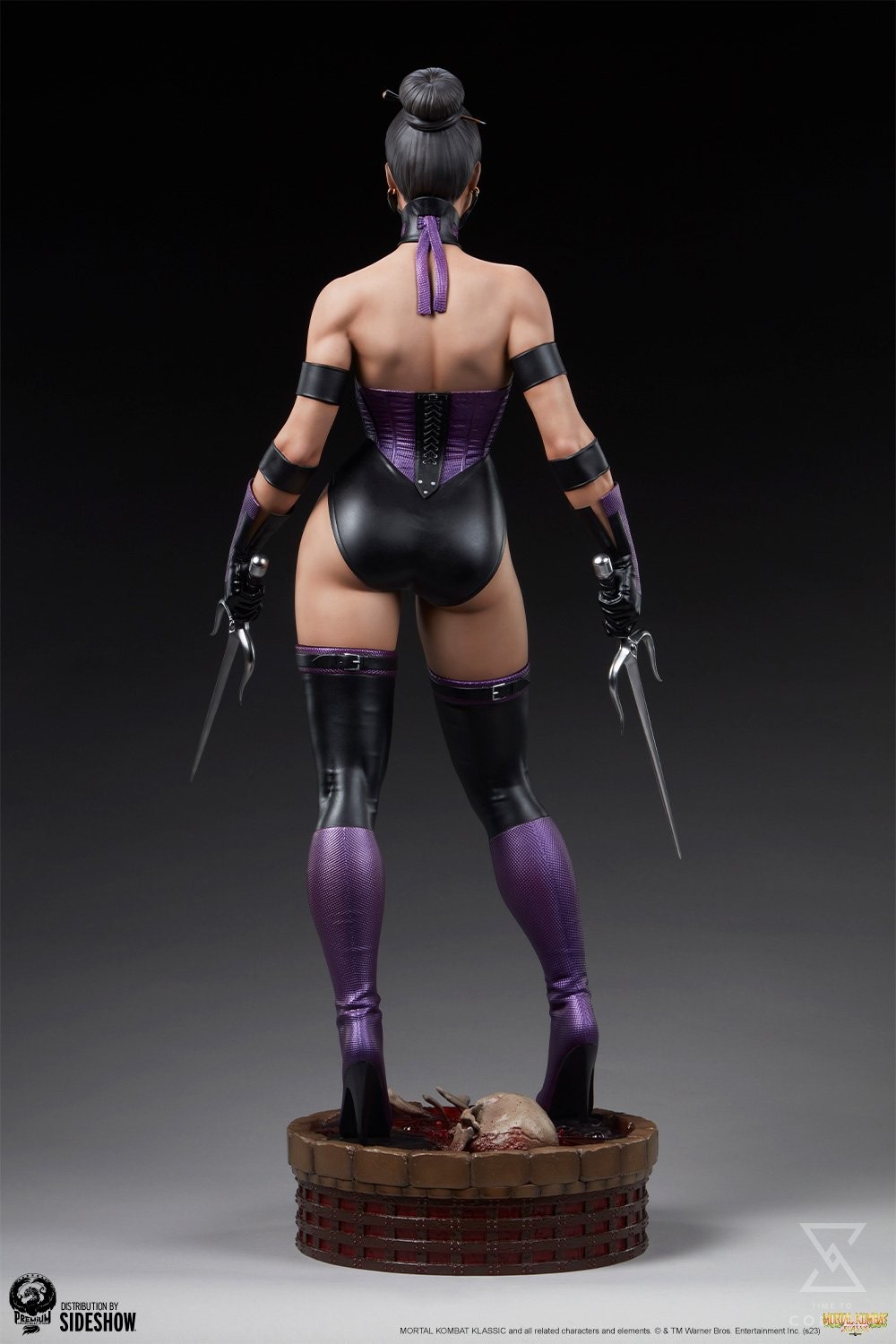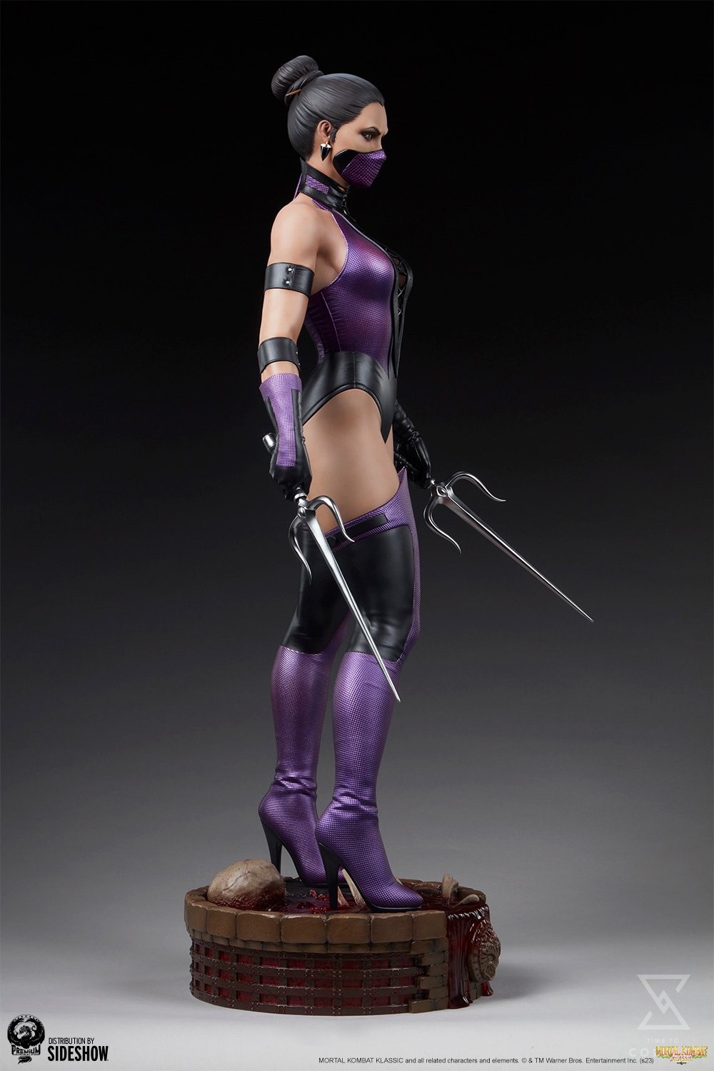 The Mileena 1:3 Scale Klassic Statue measures 30” tall and 14” wide on a pedestal base inspired by the Dead Pool stage seen throughout the Mortal Kombat series. This blood-red variation of the arena features floating skeletal remains left from the sorcerer Shang Tsung’s volatile research. Mileena holds her sai at the ready, eager to prove her strength in battle to her father Shao Kahn.