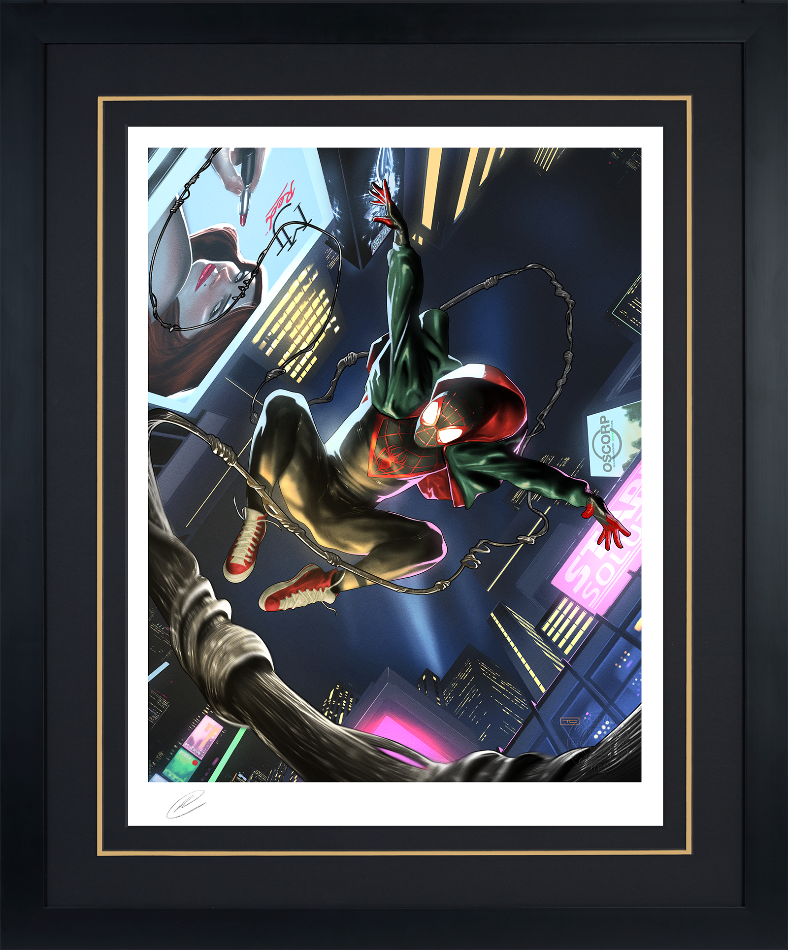 Each Miles Morales: Spider-Man Fine Art Print features an authorized, automated artist signature and an embossed Seal of Authenticity as a part of the limited edition of 400 pieces. Available unframed and in a custom framed format, this dynamic Spider-Man artwork will make the ultimate addition to any Marvel fan’s collection.