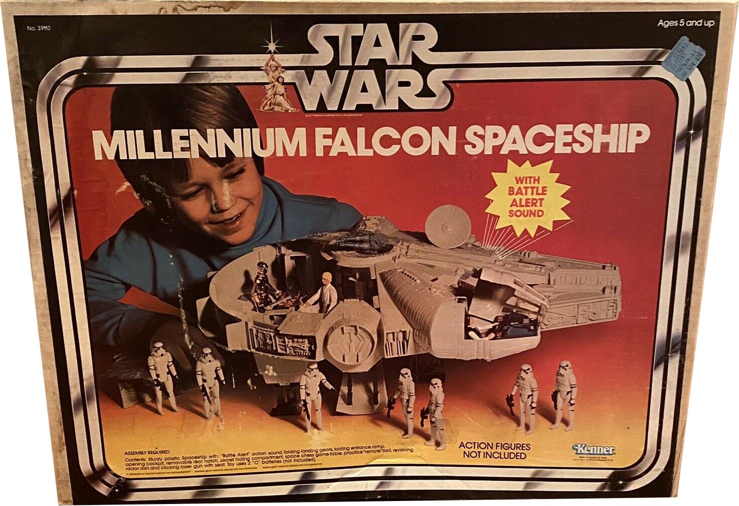 Star Wars Vintage Millennium Falcon first released in 1978 by Kenner. Part of the first wave of vehicles and playsets from Kenner to support Star Wars, A New Hope.