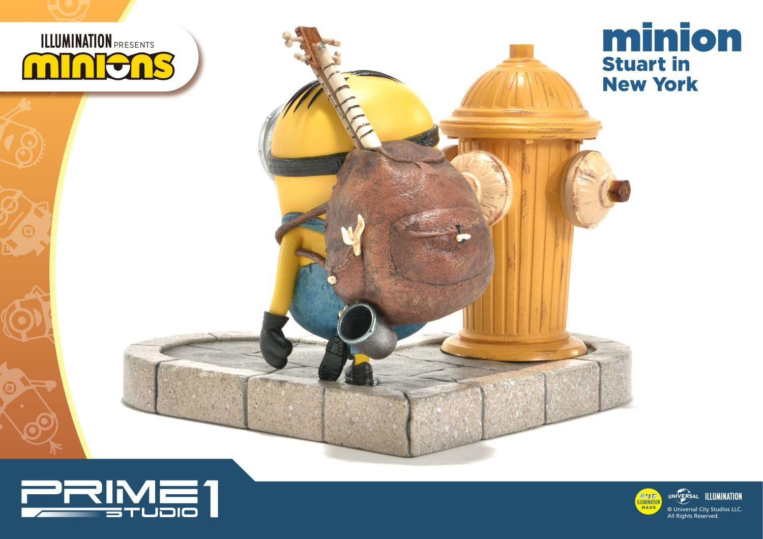 Prime 1 Studio is proud to present the second figures of the series PCFMINI-02: Minion Stuart in New York from Despicable Me & Minions series. The Minions are small, yellow, cylindrical creatures, who have one of two eyes. They are the signature characters of the Despicable Me series. They bring much of the comedy in the film, and they are known as the scene-stealer of the movie. Frequently, they speak in an incomprehensible language, called Minionese, occasionally switching to English. Stuart considered to be a slacker among the other Minions. With his usual habit, he is chilling out beside of an yellow fire hydrant in New York standing approximately 4.13 inches tall with his backpack full of food and his ukulele. Don’t miss out to add Stuart in your Despicable Me & Minions series collection.