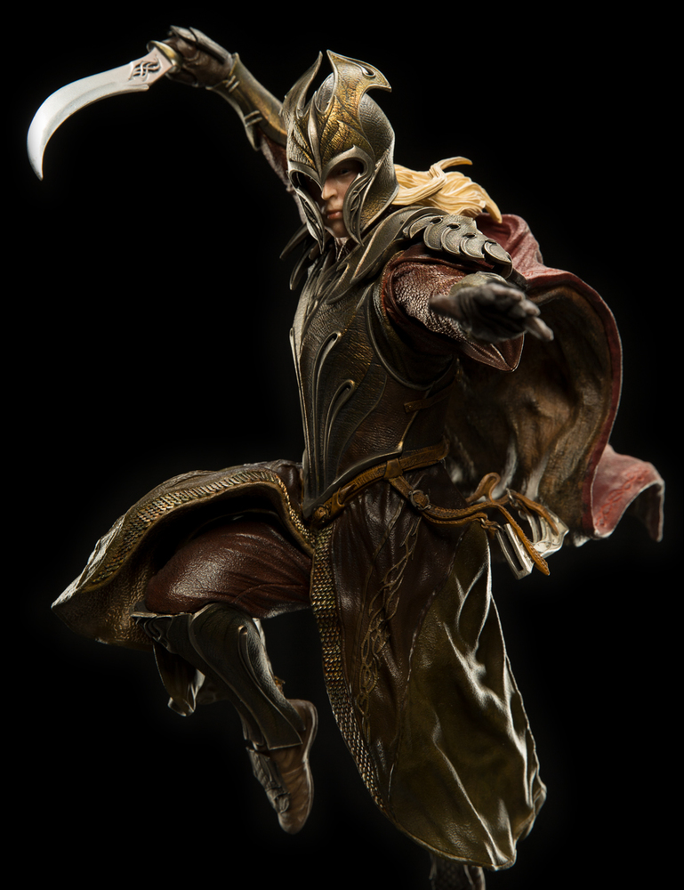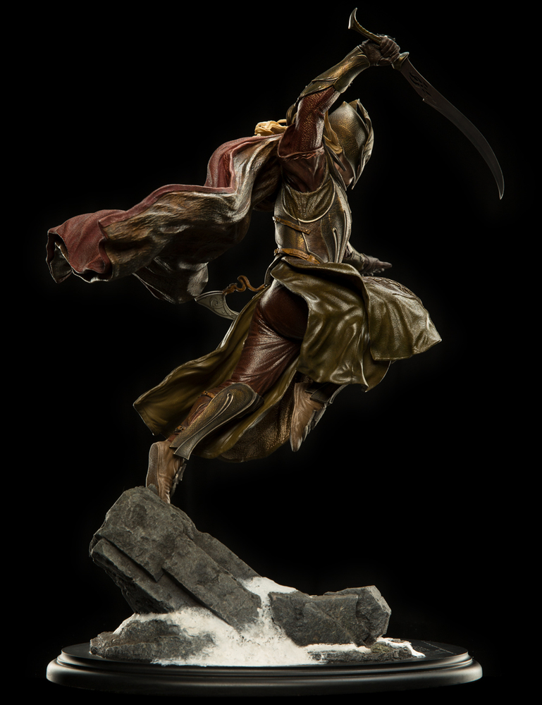 * 150 of the 750 edition were sold as a matching number set together with the Dwarf Soldiers of the Iron Hills statue, named ‘Elf and Dwarves in Battle’.