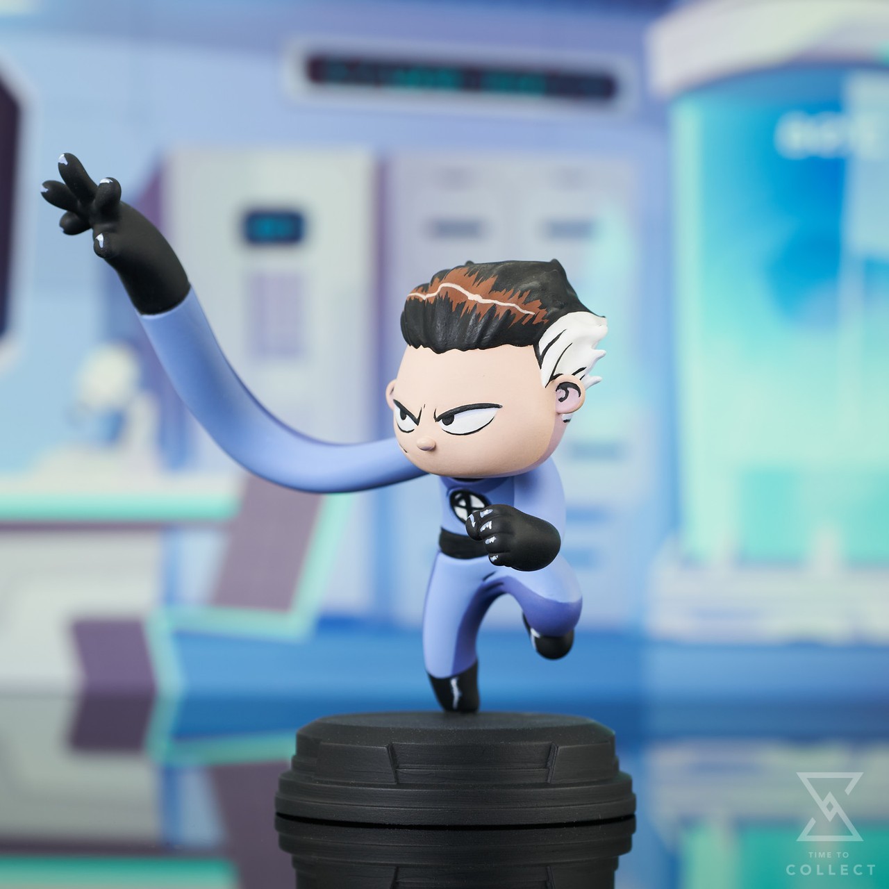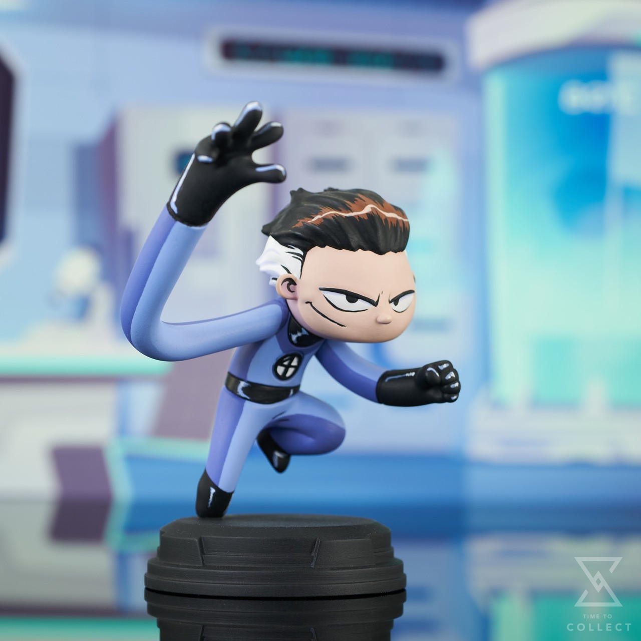 A Gentle Giant LTD release! Complete the four! Mr Fantastic joins Sue, Johnny and Ben to become the final member of the Fantastic Four in the animated-style statue line. Based on the cover artwork of Skottie Young, this approximately 4-inch resin statue depicts Reed Richards using his stretch powers as he runs to join his teammates. Limited to only 3,000 pieces, it comes packaged in a full-color box with a numbered certificate of authenticity. Sculpted by Casen Barnard!