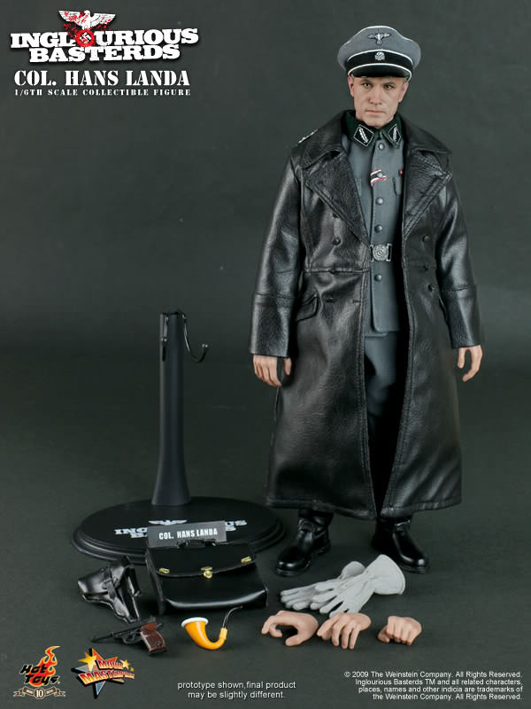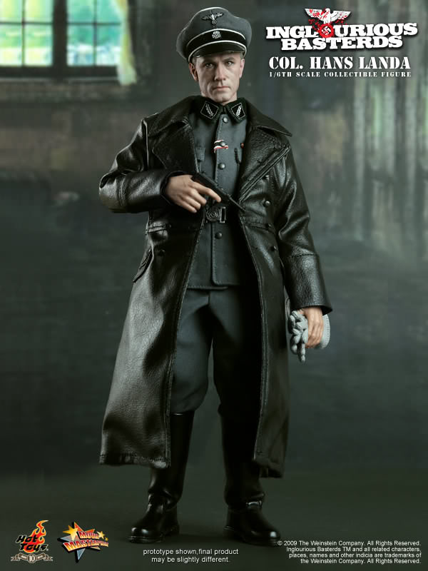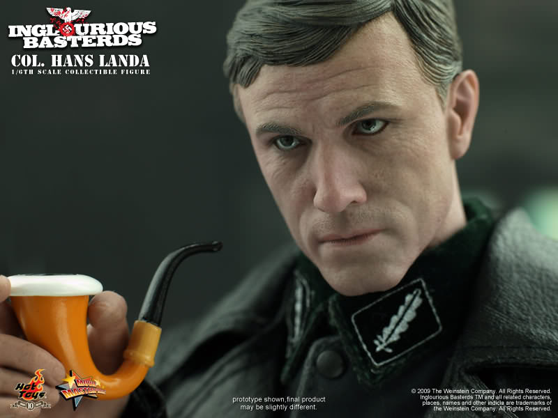 Hot Toys is proud to present the 1/6th scale Col. Hans Landa Collectible Figure from the Inglourious Basterds movie. The highly detailed Col. Hans Landa collectible is specially crafted based on the image of Christoph Waltz in the movie, highlighting the newly sculpted head, movie-accurate facial expression, Germany army uniform and detailed accessories.