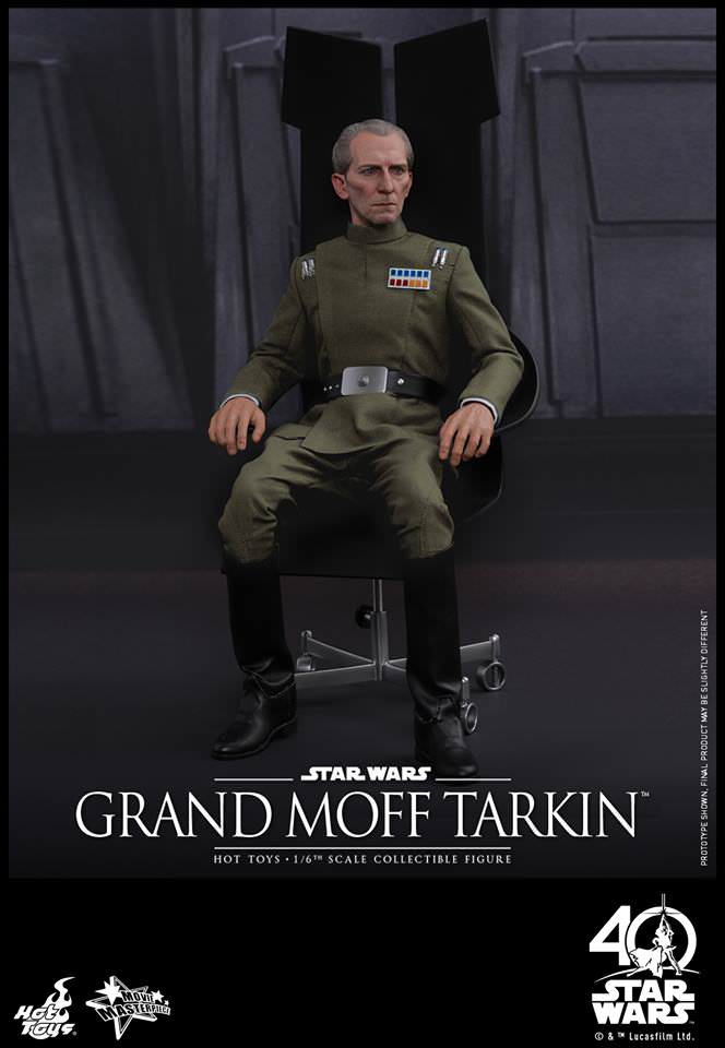 “You may fire when ready.” – Grand Moff Tarkin An ambitious, ruthless proponent of military power, Wilhuff Tarkin became a favorite of Supreme Chancellor Palpatine and rose rapidly through the Imperial ranks. Tarkin saw the Death Star as a way to crush all dissent to the Empire’s rule with the fear of the station’s planet-killing superlaser and made a terrifying demonstration of the station’s power by destroying Alderaan in front of Princess Leia’s eyes. Today Hot Toys is very excited to officially present the highly anticipated 1/6th scale collectible figure of Grand Moff Tarkin from Star Wars: A New Hope! Meticulously crafted based on the appearance of Grand Moff Tarkin in Star Wars: A New Hope, the figure features a newly developed head sculpt with phenomenal likeness, a finely tailored Imperial uniform, Grand Moff Tarkin’s high back chair, and a specially designed figure base.