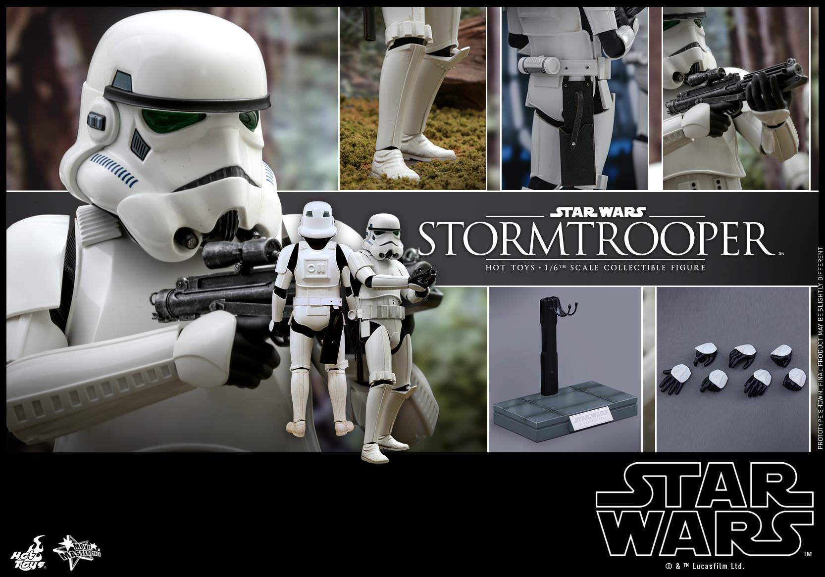 The highly accurate collectible figure features a newly refined Stormtrooper helmet and armor allowing improved articulations, all new paint applications, a fabric under-suit, a blaster rifle.