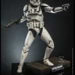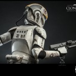 The new 1/6th scale Clone Pilot collectible figure features a specialized Clone Pilot helmet, an interchangeable Clone Pilot helmet, a detailed armor with weathering effects, two styles of blasters, a pair of binoculars, thermal detonators, and a figure base!