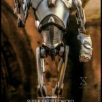 The 1/6th scale Super Battle Droid collectible figure is based on its appearance in the Geonosis™ arena battle. It features a newly developed mechanical structure with stunning metallic paint applications, a wide range of articulations, and a sand-themed display stand!