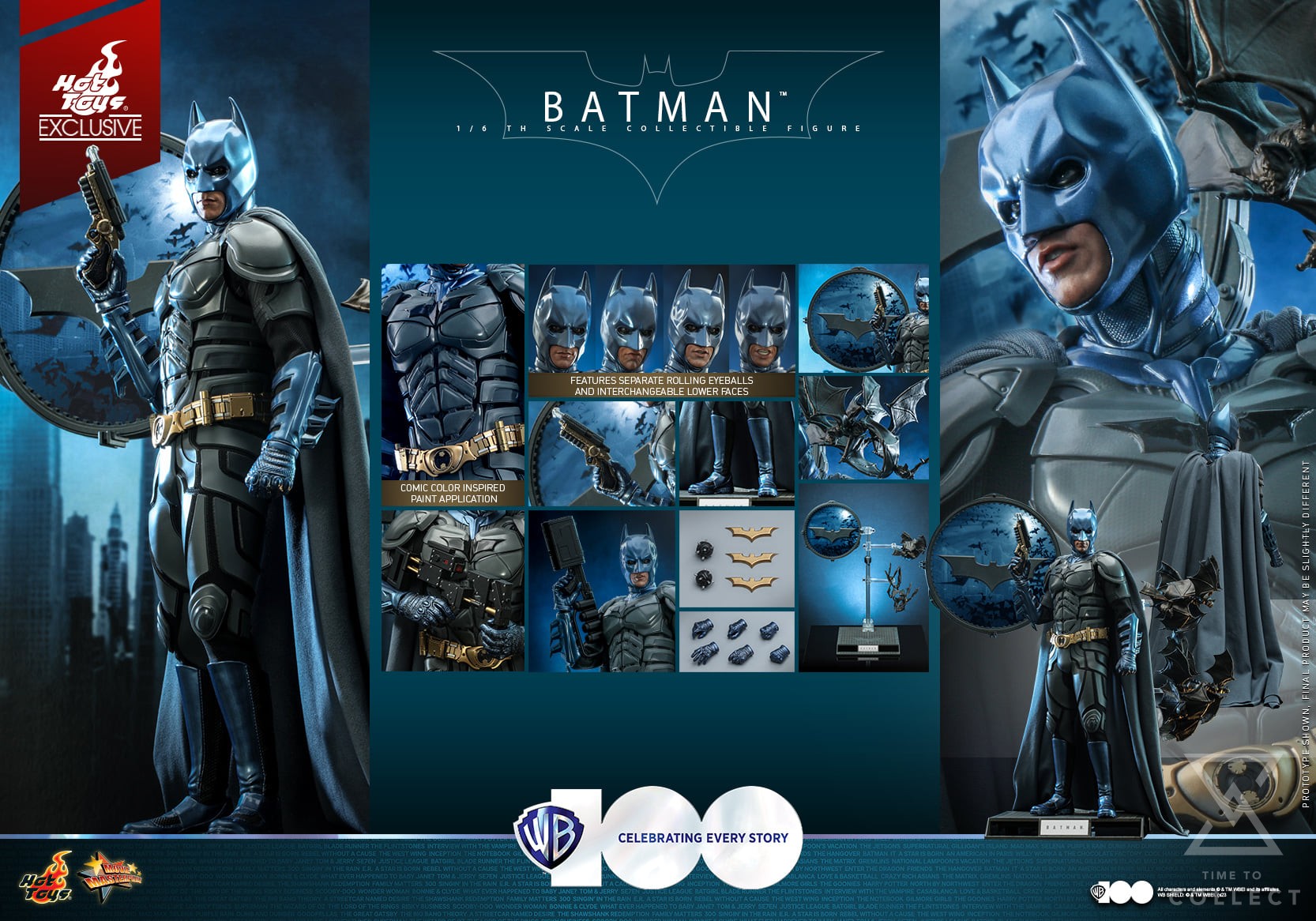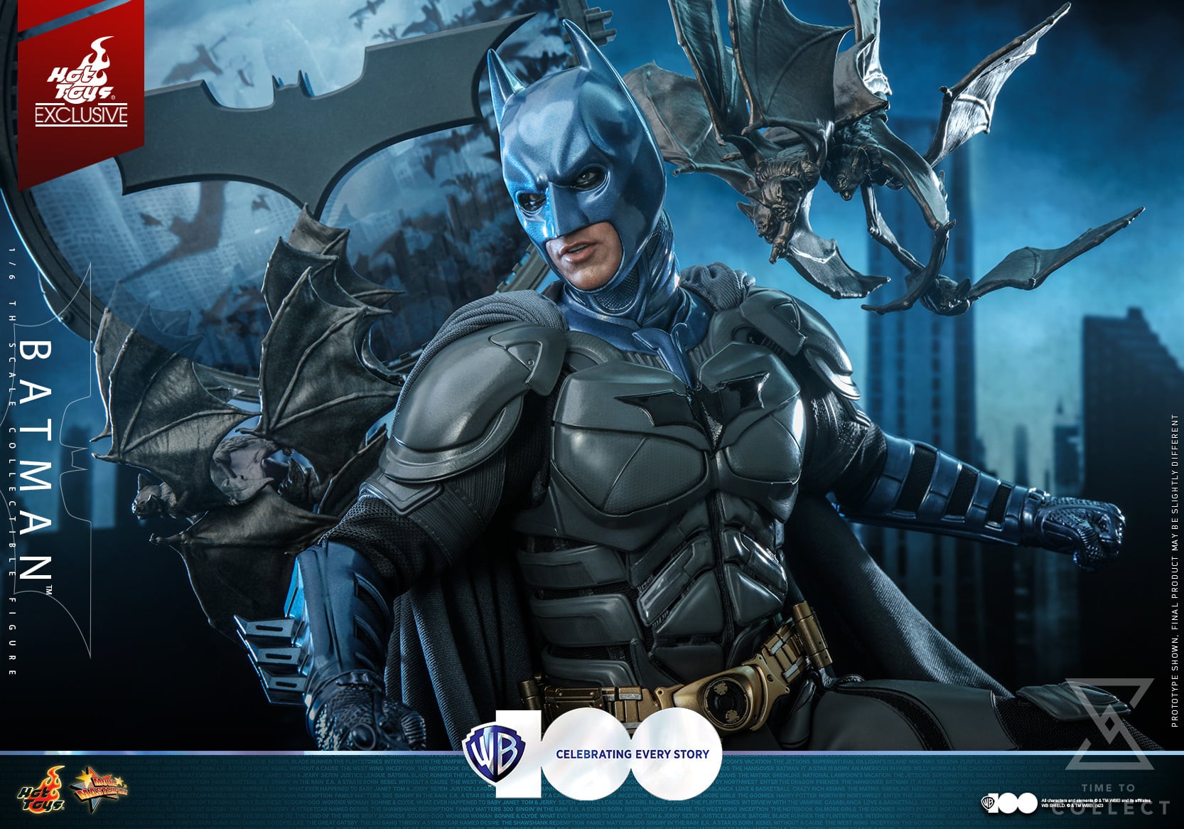 – One (1) metallic blue and matte grey colored Batsuit featuring fabric costume covered with armor