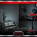This Deluxe Version of this Darth Vader collectible exclusively includes an interchangeable light-up helmeted head inspired by Darth Vader shocked by Force lightning, a staircase diorama base, and figure base arms for additional display options!