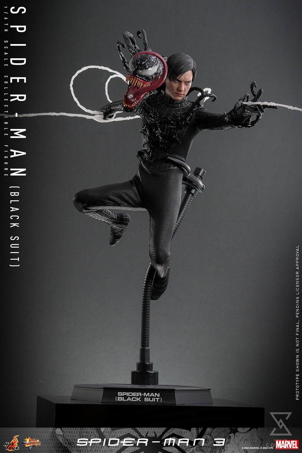 - Authentic and detailed likeness of Tobey Maguire as Peter Parker / Spider-Man wearing Black Suit in Spider-Man 3