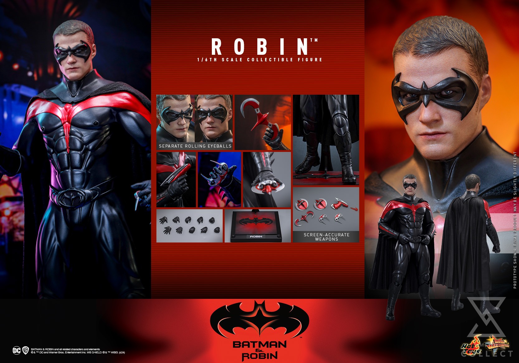 Masterfully crafted based on the appearance of Chris O’Donnell as Robin, the highly detailed figure features a newly developed head sculpt with separate rolling eyeballs, a newly tailored all-black suit accentuated by metallic red details, along with an arrays of weapons and accessories in a red and silver color scheme including Robin’s Throwing Bird, a laser gun, a pair of climbing devices and pair of ice-climbing pick, and a specially designed movie-themed figure stand.