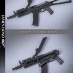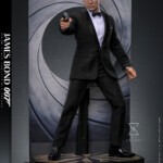 Exquisitely crafted based on Daniel Craig’s role as James Bond, the figure features a newly developed head sculpt with distinguished likeness and separate rolling eyeballs to enhance figure’s realism. The fabric costume is finely tailored to showcase James Bond’s classic gentleman appearance. Layering a black tux jacket with pocket square detail over a white dress shirt, the tux look is finished with a black bow tie and a watch. Additionally, two types of pistol and a machine gun are included to enhance the display on top of the gun barrel-themed backdrop and figure stand.