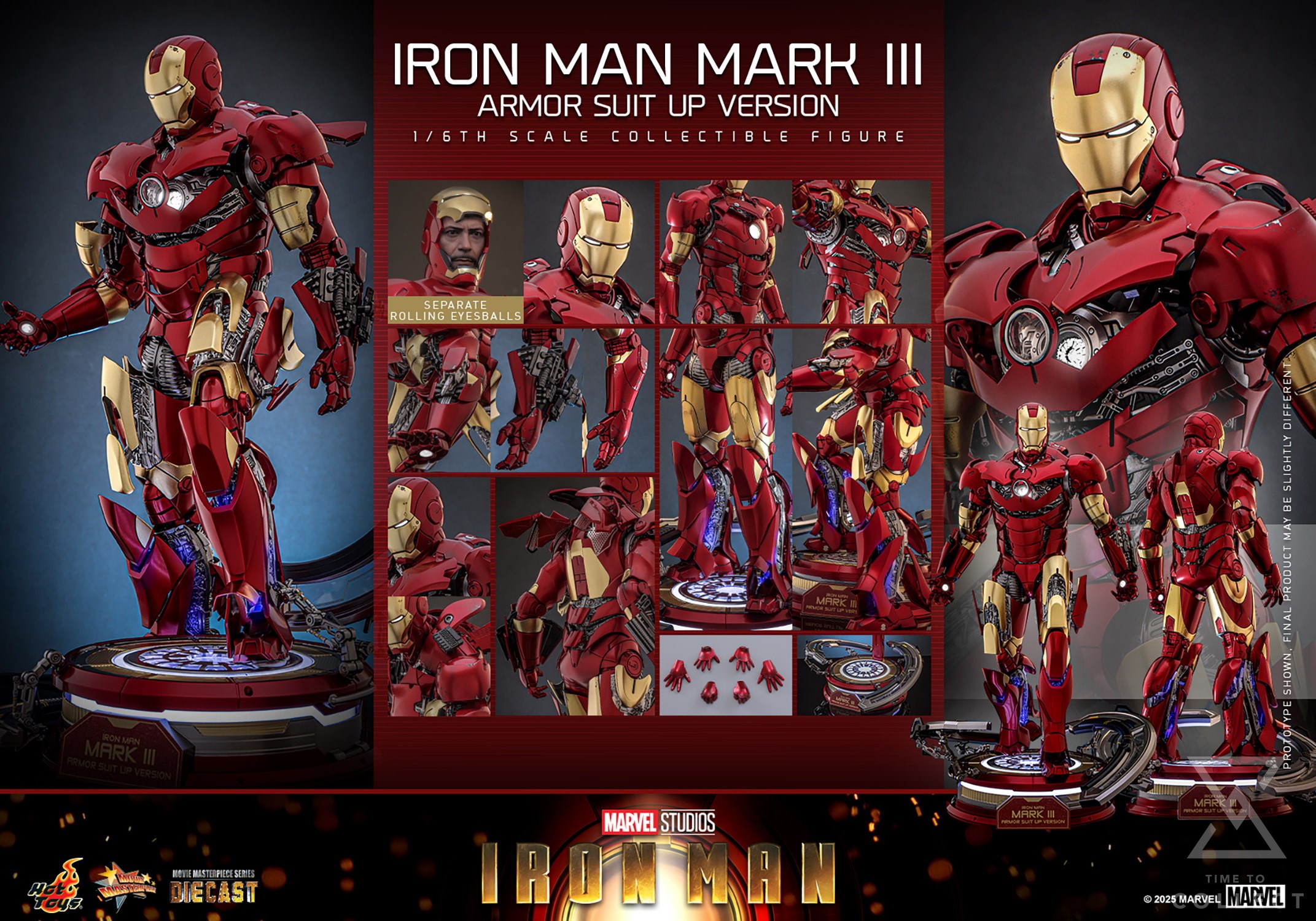 The Iron Man Mark III (Armor Suit Up Version) Sixth Scale Figure features: