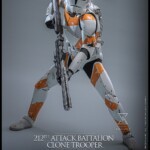 Sideshow and Hot Toys are excited to present the 212th Attack Battalion Clone Trooper™ Sixth Scale Collectible Figure, meticulously crafted to honor the valor and legacy of this iconic unit. The Star Wars action figure features a finely crafted helmeted head with battle weathering. Dressed in a finely crafted set of white armor painted with bold orange patterning and weathering effects, the trooper’s uniform replicates the worn armor as seen in the film. His utility belt is accented with orange detailing, and his boots also show authentic wear from countless engagements.
