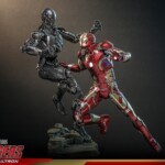 Sideshow and Hot Toys is proud to present the Iron Man Mark XLIII (2.0) Sixth Scale Collectible Figure (Deluxe Version). This release features a head sculpt capturing the likeness of Robert Downey Jr. as Tony Stark, complete with battle-damaged paint applications and separate rolling eyeballs. To offer an alternate display, the sixth scale figure includes an Iron Man helmeted head with LED light and interchangeable faceplates, allowing collectors to switch between a pristine and a battle-scarred look.