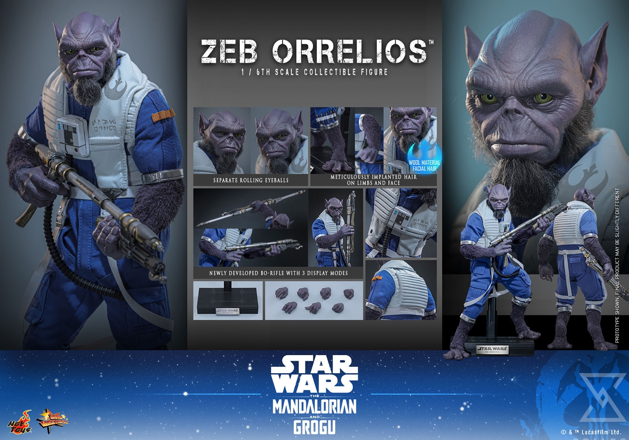 Sideshow and Hot Toys is excited to introduce the Zeb Orrelios™ Sixth Scale Collectible Figure. This meticulously crafted figure features a newly developed head sculpt with separate rolling eyeballs and meticulously implanted wool material facial hair that perfectly capture Zeb’s unique Lasat facial features. His newly developed specialized body stands at approximately 33 cm tall with 30 points of articulation to recreate his imposing, muscular physique. The hyper-realistic fiber material hair on his limbs adds an extra layer of authenticity to his appearance. Zeb comes outfitted in a newly tailored fabric costume, including a blue one-piece flight suit and a white padded vest adorned with the Rebel Alliance symbol. His tactical gear is complete with an attachable life-support device, flight harness, and knee bandolier.