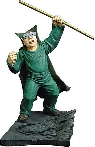 A Diamond Select Release! The forth release in the Silver Age Fantastic Four Series depicts their first super-villain foe, The Mole Man! All four members of the Fantastic Four will also be part of this line, inspired by the cover to the Lee/Kirby 1961 classic, Fantastic Four #1! As an added bonus, each statue in the line will ship with a piece of the Mole Man’s subterranean monster (as seen on the cover of FF #1)! When you collect all five bonus pieces, you can complete the Mole Man’s monster – and the classic cover image! Sculpted by Jeff Feligno, the Mole Man is limited to 3,000 pieces worldwide, with each piece accompanied by a hand-numbered, full-color Certificate of Authenticity, as well as matching numbering on the box and piece itself. In stores October 2005.